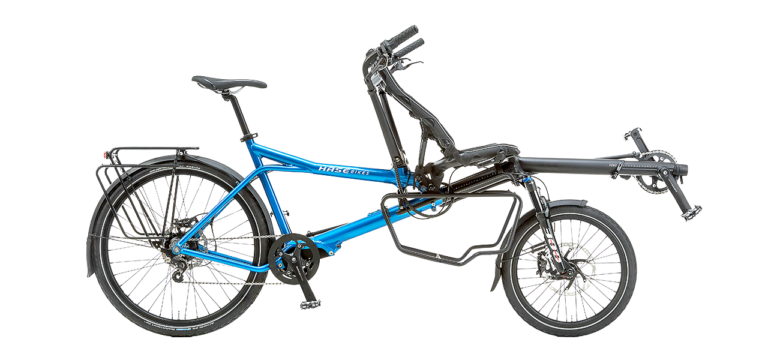 Le Pino Hase n’est pas un tandem classique: la personne qui pilote est à l’arrière, le passager est assis devant et pédale en position semi-couchée. Deux transmissions indépendantes permettent à chacun·e de pédaler à son rythme.